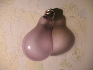 Having redrawn the image on to the Arches, I returned to my desk to find that the Chromalux bulb that I use in my desk lamp was blown out. Hurmf! Luckily, I had a spare bulb on my shelf.